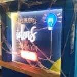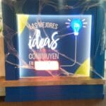 Decoración de muro en el 5 piso del Edificio Quala, textos pequeños en vinilo corte plotter, textos grandes y bombillo en acrílico con iluminación led interna.